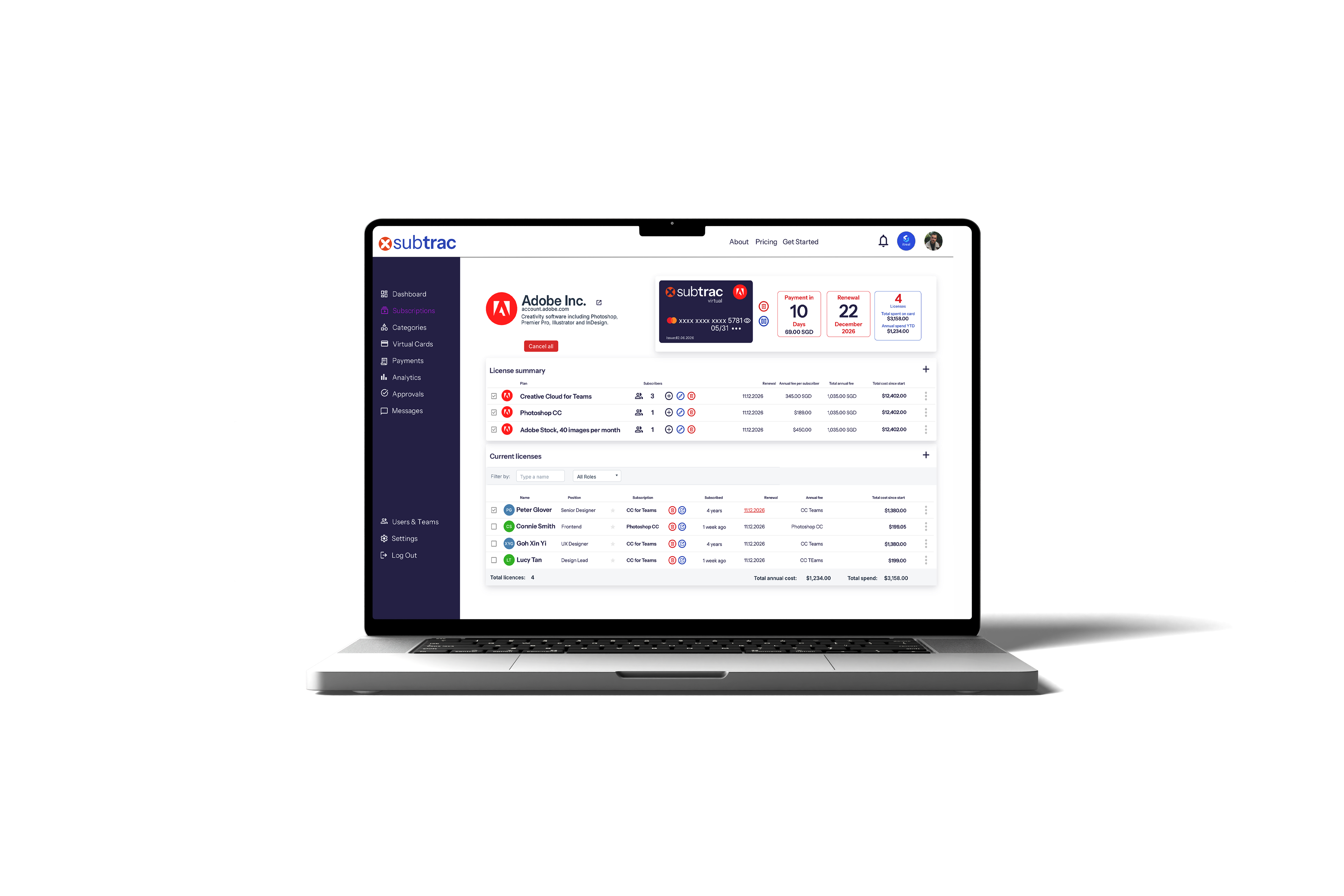 Subtrac is a platform that helps businesses manage their subscriptions and recurring payments in one place. With virtual cards and charge card facility, every subscription, every license and every user is managed in one place.